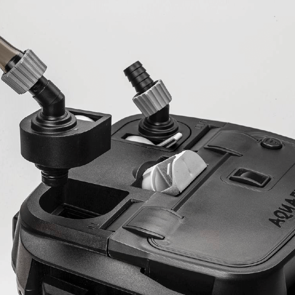 یکی از مشکلات رایج هنگام سرویس فیلتر، نشت آب هنگام جدا کردن شلنگهای ورودی و خروجی است. Aquael Ultramax 1500 با استفاده از سیستم ثبتشده شیر توپی دوگانه این مشکل را حل کرده است. این سیستم بهطور همزمان ورودی و خروجی فیلتر و همچنین شلنگها را مسدود میکند تا هیچ آبی بهطور ناخواسته به بیرون نریزد.