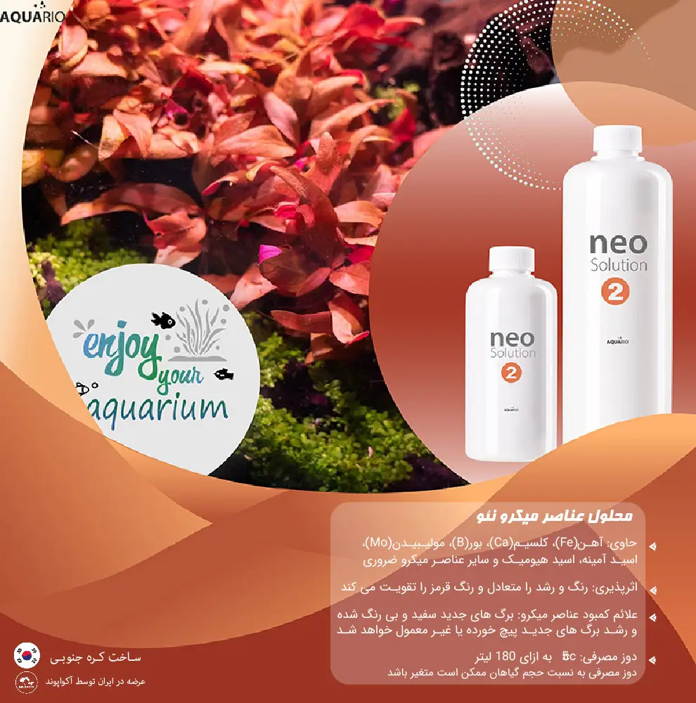 Neo Solution را می توان در پاسخ به بسیاری از علائم مختلف با سوءتغذیه استفاده کرد و با توجه به انواع گیاهان آبزی به طور بهینه از آن استفاده کرد.