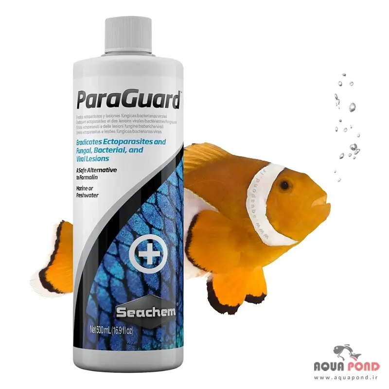 در آکواپوند توصیه میکنیم در هنگام ورود ماهیهای جدید یا بروز اولین نشانههای استرس و بیماری، از داروی ضد انگل پاراگارد بهصورت پیشگیرانه یا درمانی استفاده کنید. برای بهترین نتیجه، درمان را در تانک قرنطینه انجام داده و در کنار محصولاتی مانند StressGuard از برند سیچم استفاده کنید تا فرآیند ترمیم بافتها و کاهش استرس ماهیها تسریع شود