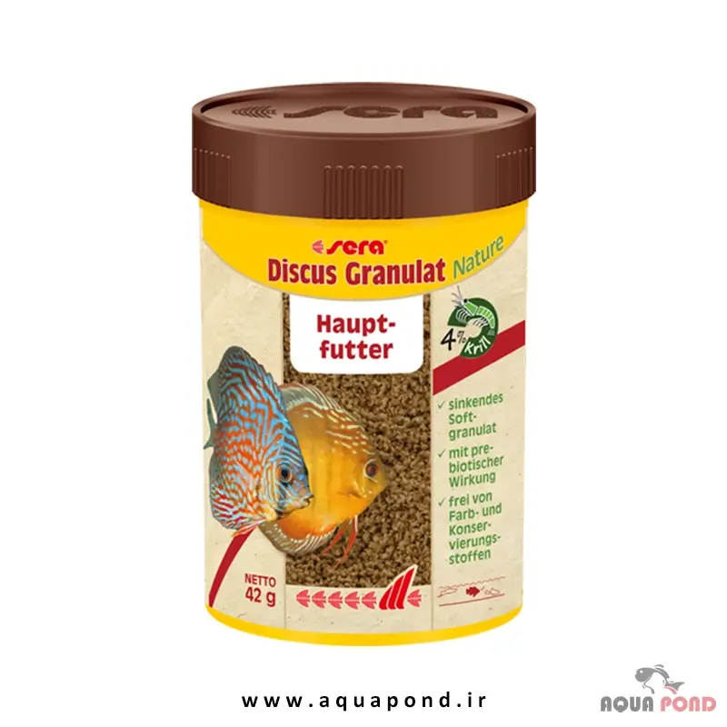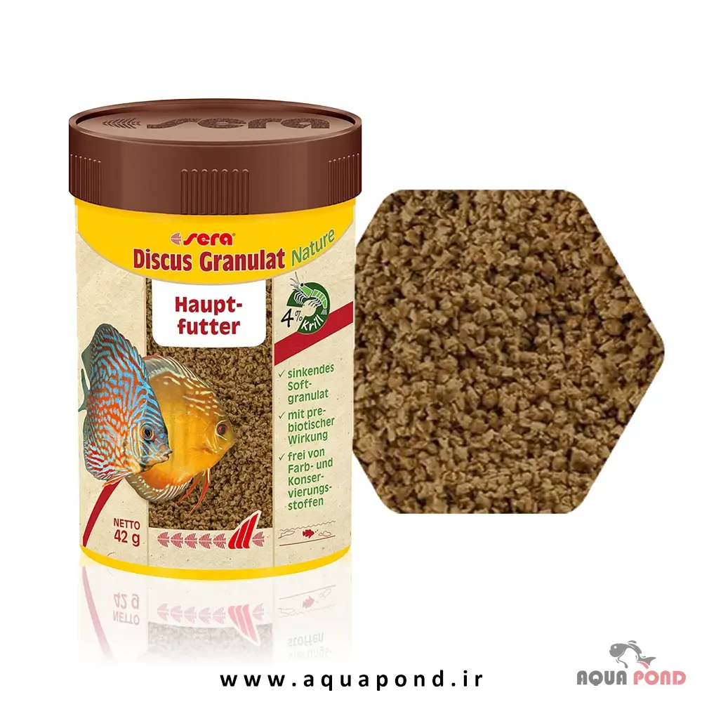 این محصول متعلق به مجموعه محصولات “sera Nature” است که نیازی به رنگ یا مواد نگهدارنده ندارد. یک رژیم غذایی متنوع با مواد تشکیل دهنده نزدیک به طبیعت، بهترین محافظت در برابر کمبودها است و از سلامت و سرزندگی ماهی پشتیبانی میکند. بنابراین، انواع غذاهای Nature حاوی مواد طبیعی مانند اسپیرولینا، کریل یا پودر حشرات پایدار از لارو مگس سرباز (Hermetia) هستند. مهرهای روی بستهبندی، این مواد و میزان آنها را در غذا برجسته میکنند.