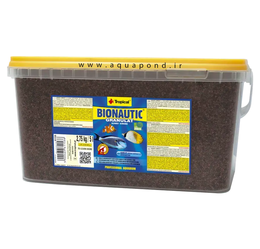تروپیکال گرانول بایوناتیک (Tropical bionautic granulat) یک غذای گرانولی کامل و چند جزئی برای ماهیهای دریایی کوچک و متوسط، سختپوستان و بیمهرگان است