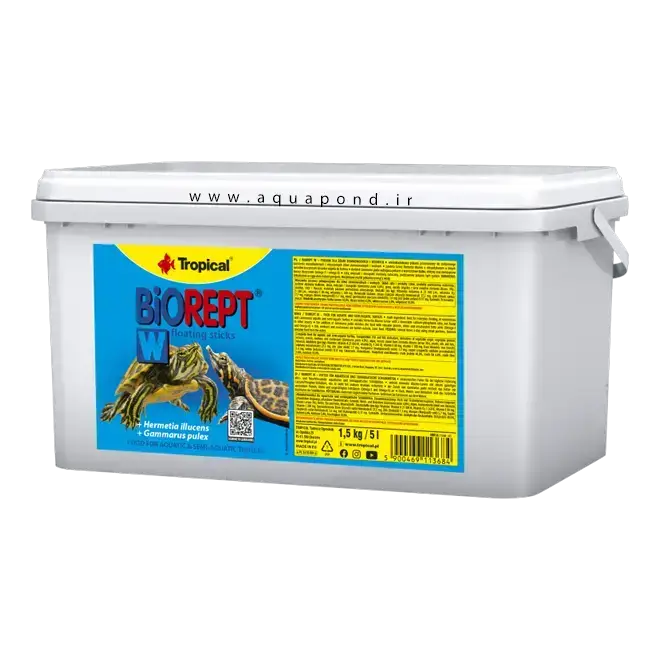 تروپیکال بایورپت Tropical biorept W) w) یک غذای چند جزئی به شکل استیک برای تغذیه روزانه لاکپشتهای آبزی و آّبزی، ترکیب ویژه مواد اولیه طبیعی انتخاب شده، نیازهای غذایی لاکپشت را تأمین میکند. توجه ویژهای به افزودن سختپوستان، از جمله گاماروس و کریل، که منبع پروتئین ارزشمند، اسیدهای امگا ۳ و امگا ۶ و کیتین هستند و عملکرد دستگاه گوارش را تنظیم میکنند، شده است.