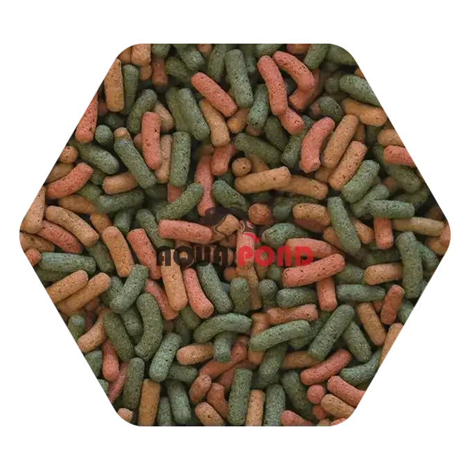 ماهی و فرآوردههای ماهی، فرآوردههای گیاهی، عصارههای پروتئین گیاهی، نرمتنان و سختپوستان (شامل گاماروس پولکس ۴.۸٪)، غلات، جلبکها، مخمرها، روغنها و چربیها، مواد خوراکی با منشأ معدنی (شامل زئولیت ۱٪).