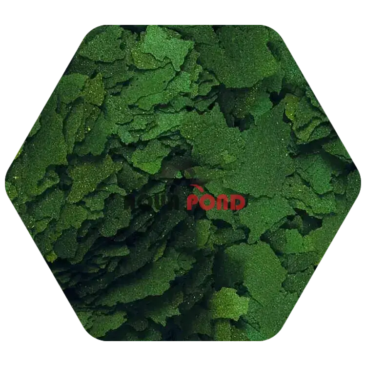 پولکی اسپیرولینا منبع طبیعی رنگدانههای غلیظ (کاروتینوئید) و سایر مواد مغذی ضروری است که به طور قابل توجهی رنگ ماهی را بهبود میبخشد. این غذا به راحتی قابل هضم است و محتوای اسپیرولینا متابولیسم را تنظیم میکند و تأثیر مثبتی بر رشد، سرزندگی و آمادگی برای تولید مثل دارد.