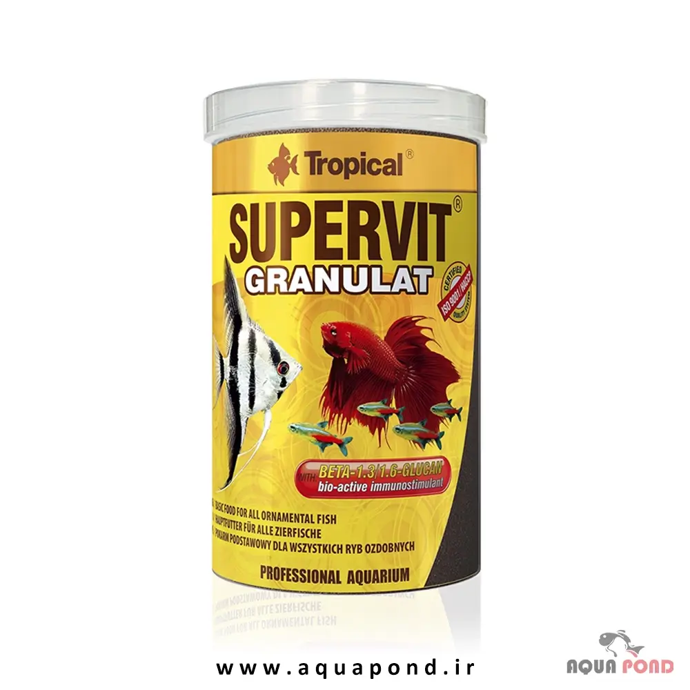 تروپیکال سوپرویت گرانولات (Tropical supervit granulat) یک غذای کامل، چند جزئی و گرانولی با بالاترین کیفیت برای تغذیه روزانه همه ماهیان آکواریومی است.