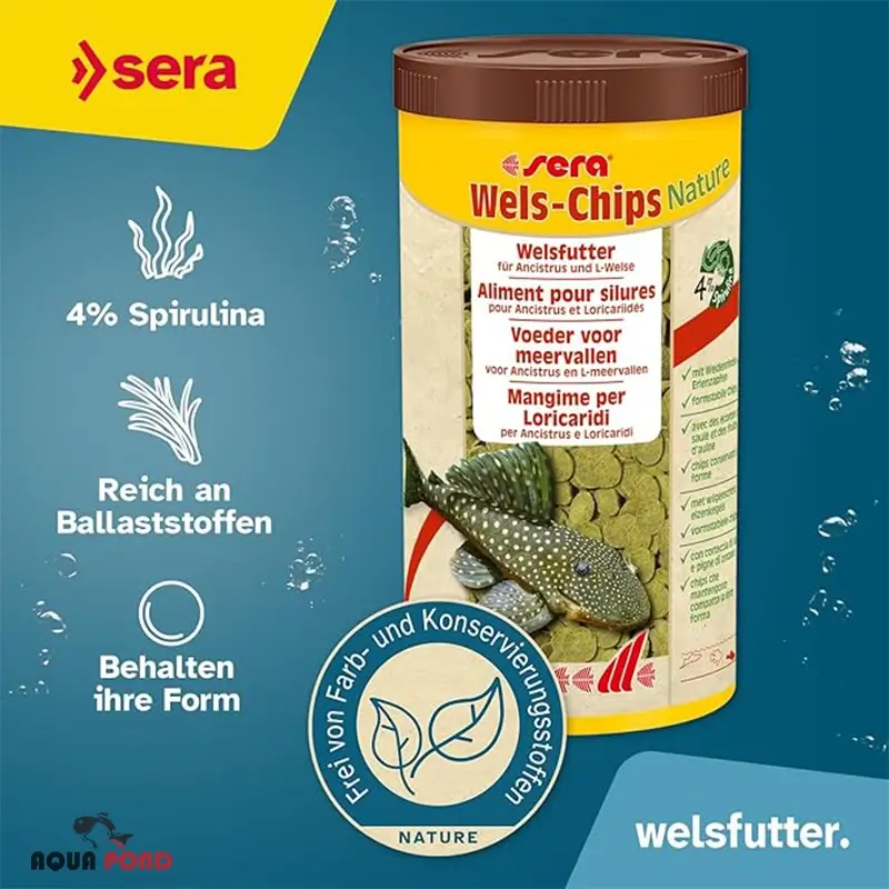 توضیحات تکمیلی: sera Catfish Chips Nature غذای اصلی بدون رنگ و مواد نگهدارنده برای ماهیهای کفخوار مانند Ancistrus و plecos است. ترکیب متعادل با مقدار زیادی فیبر (از الیاف پوست درخت بید و مخروط توسکا و…) و همچنین اسپیرولینا طبیعی از هضم و رشد سالم حمایت می کند. چیپس هایی که به سرعت فرو می روند در آب و شکل خود را حداقل برای ۲۴ ساعت حفظ می کنند و البته آب را آلوده نمی کنند. بنابراین این غذا اجازه می دهد گربه ماهی ها عمدتاً شبانه به آرامی و بدون هیچ مشکلی غذا بخورند، که عادات تغذیه طبیعی آنها را برآورده می کند.
